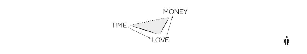 Time, love, and money all work together to give substance to life as we know it, and create the future. In society, the people who control the vast amounts of money (Value created by people) tend to direct what we do with our time, therefore shape our collective future.